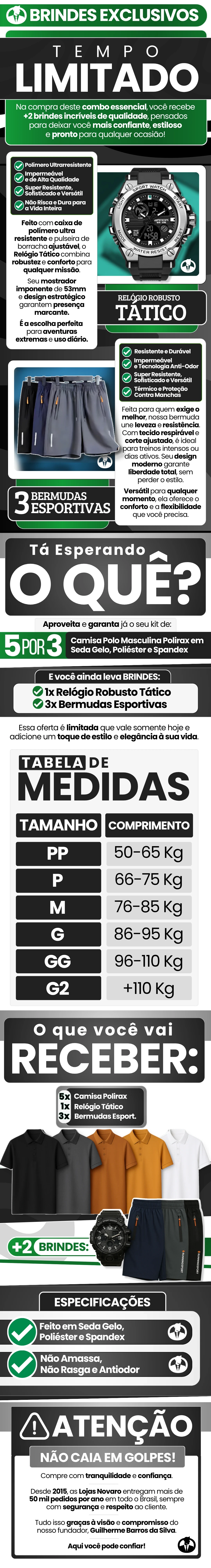 Visual limpo, sem frescura. Cores sólidas que impõem respeito. Gola polo estruturada, corte preciso e presença instantânea. Essa peça encaixa tanto na reunião quanto no lazer — e sim, chama atenção das mulheres sem esforço.
