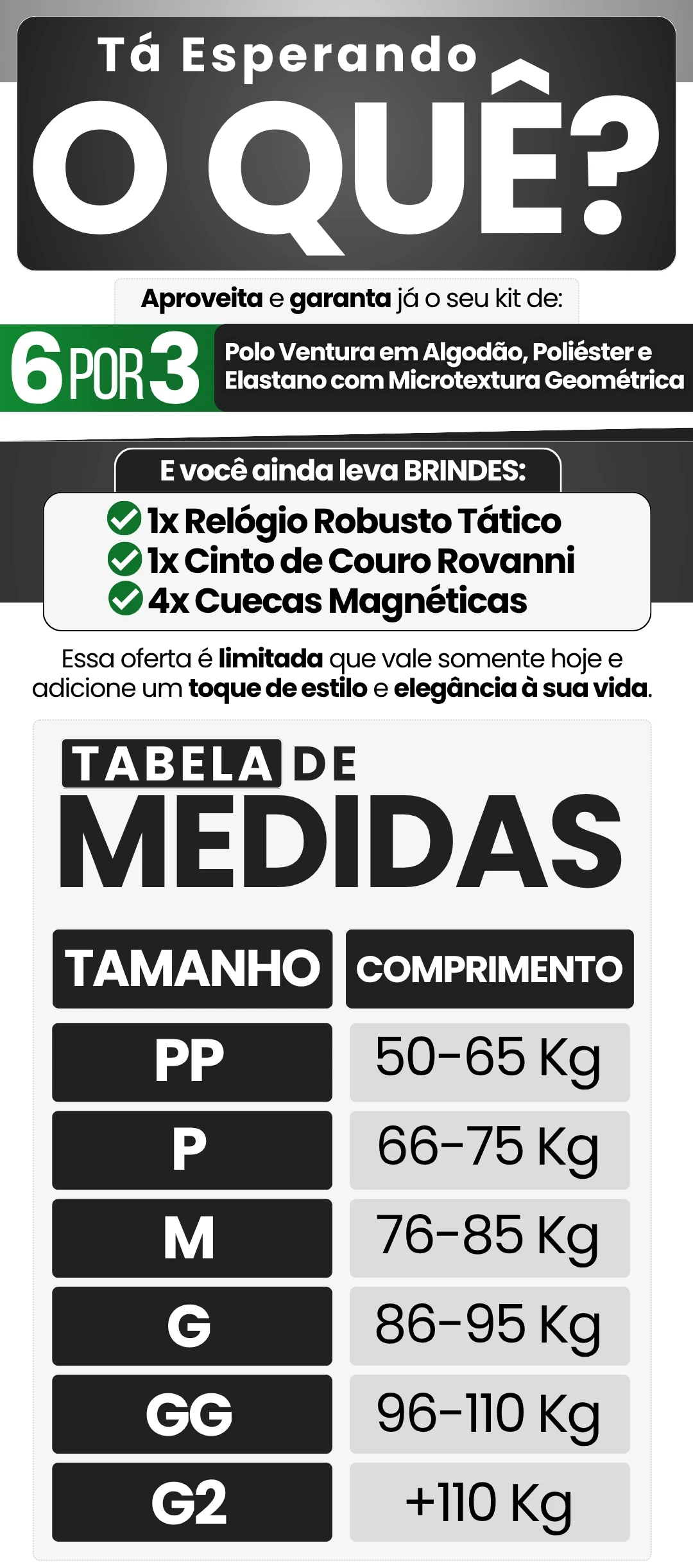Este produto está em produção, e os primeiros lotes já estão se esgotando. Se você quer uma camisa com qualidade real, com estrutura que vai além da moda, é o momento de agir. Não é só peça, é uma escolha certeira para quem entende do que é durável. Com isso, você não é apenas comprador – é um membro de um grupo especial.